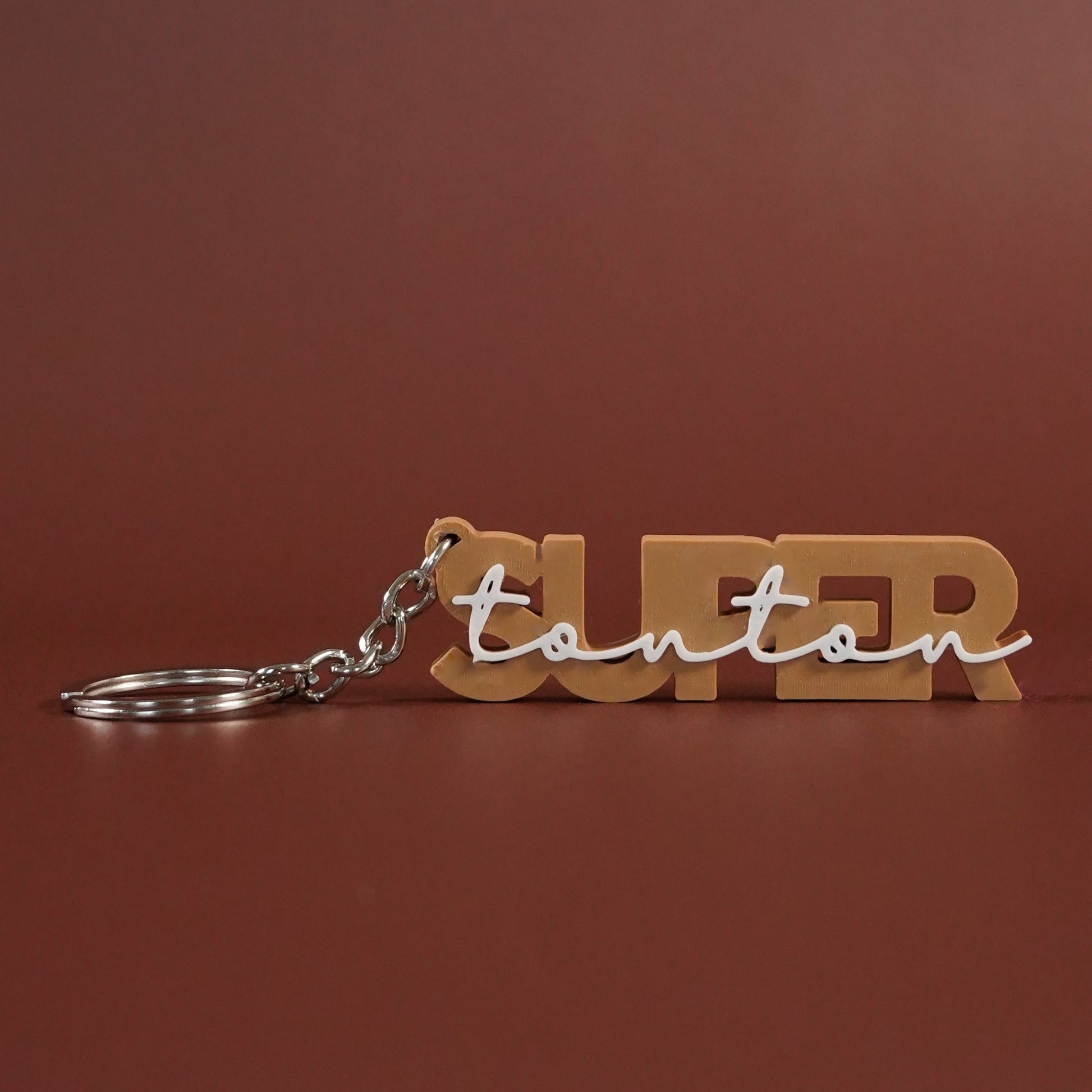 Ce porte-clé "Super tonton" est le cadeau idéal pour lui rappeler chaque jour combien il compte pour vous. Simple, pratique et plein de tendresse, il accompagnera ses clés, son sac ou sa voiture tout en lui réchauffant le cœur.